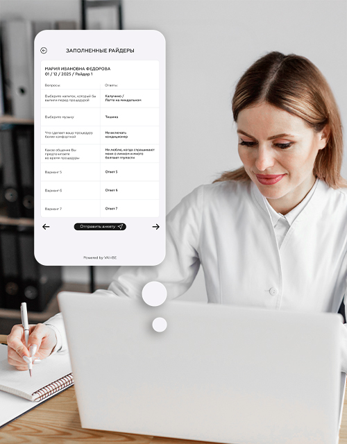 My-Rider помогает клиникам и салонам выстроить предсказуемый, персонализированный сервис: узнать предпочтения клиента и передать всё это команде до визита. Ниже — реальные отзывы о том, как райдер влияет на сервис, продажи и лояльность.
